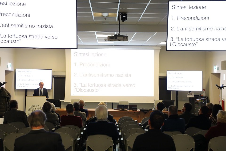 In questo spirito, la nostra comunità accademica partecipa alle celebrazioni del Giorno della Memoria con due momenti pubblici di approfondimento. Mercoledì 28, lezione di Tommaso Piffer, docente di Storia contemporanea, su “L'Olocausto, un’introduzione storica”; giovedì 29, lezione di Claudia Candelmo, docente di Diritto internazionale, su “Il crimine di genocidio nel diritto internazionale”. Entrambe nell’aula Pasolini di Palazzo di Toppo Wassermann, con inizio alle 18.