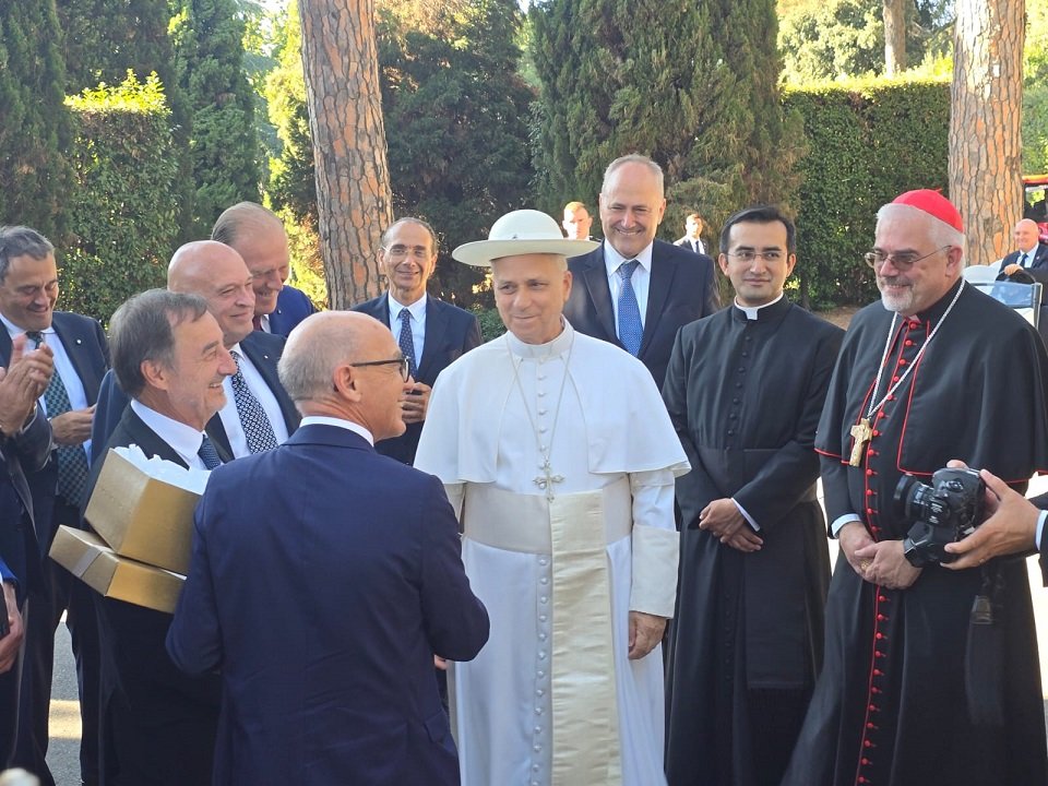 Una delegazione dell’Università di Udine ha partecipato all’inaugurazione, presieduta da Papa Leone XIV, del “Borgo Laudato si’”, nell’area delle Ville Pontificie di Castel Gandolfo. La delegazione era guidata dal rettore, Roberto Pinton, e composta dai professori Enrico Peterlunger, Roberto Zironi e il rettore eletto Angelo Montanari. Il rettore ha donato al Santo Padre un capello da vignaiuolo. Il Borgo è un progetto esemplare e virtuoso di economia circolare realizzato su 55 ettari, di cui circa 30 a destinazione agricola. In questi terreni è stata impiantata una vigna progettata e messa a dimora da un pool internazionale di esperti coordinati da Peterlunger e Zironi, docenti del Dipartimento di Scienze agroalimentari, ambientali e animali dell’Ateneo friulano. Il vigneto, simbolo di un modello di sviluppo sostenibile, è costituto anche da alcune varietà di viti resistenti a diverse malattie frutto della ricerca svolta dall’Ateneo friulano in collaborazione con l’Istituto di genomica applicata (Iga) e i Vivai Cooperativi Rauscedo. La vigna è stata realizzata anche con il sostegno della Regione Friuli Venezia Giulia.