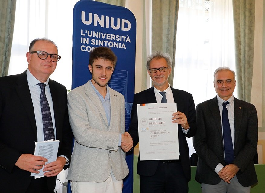 È Giorgio Bianchet di Zoppola, laureato magistrale in Ingegneria meccanica all’Università di Udine con il massimo dei voti e la lode, il vincitore della prima edizione del premio dedicato all’imprenditore innovatore Carlo Leopoldo Lualdi. Il riconoscimento di 2.000 euro, destinato a tesi di laurea innovative in tutti i campi, è stato istituito dal Rotary Club “Udine Nord” in collaborazione con l’Ateneo friulano. Ben 69 le tesi candidate per concorrere al premio.