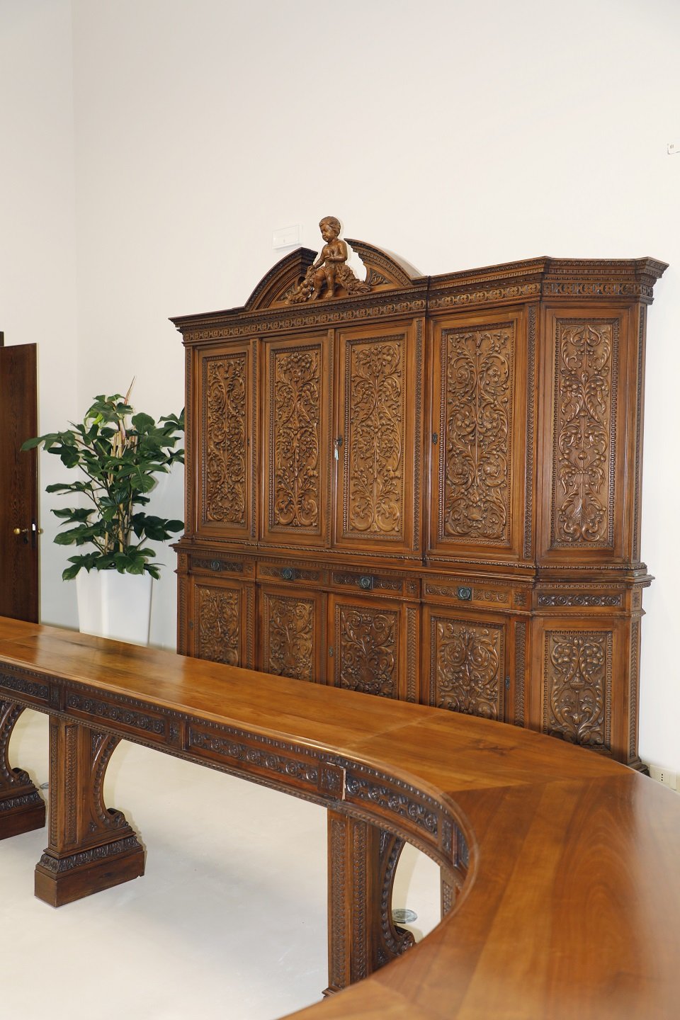 Il mobilio della storica sala del Consiglio di Amministrazione della Cassa di Risparmio torna a nuova vita in un luogo in cui i giovani sono protagonisti. La Fondazione Friuli, erede del patrimonio artistico dell’istituto di credito, ha infatti ceduto all’Università di Udine gli arredi risalenti all’inizio del Novecento, utilizzati un tempo nell’edificio del Monte di Pietà e successivamente nella sede dell’ente in via Manin. Oltre a poltroncine in pelle, il comodato d’uso si sostanzia nella concessione di credenze e tavoli di pregiata fattura, realizzati dell’ebanista friulano Virginio Lodolo tra il 1914 e il 1915, che l’ateneo ha deciso di utilizzare per la propria sede di Gemona, in Palazzo Fantoni, anch’esso da poco ristrutturato e diventato un punto di riferimento culturale della cittadina.