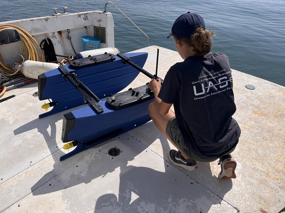 Il progetto “New air-underwater technologies for archaeology” (Nauta) è stato sperimentato nelle ricerche condotte a Grado – in collaborazione con la Soprintendenza archeologia, belle arti e paesaggio del Friuli Venezia Giulia –, in particolare sul sito lagunare di Marina di Macia. Grazie all’impiego congiunto di un drone aereo e di un operatore subacqueo sono stati importati entrambi i rilievi, georeferiti e perfettamente sovrapponibili. Questo ha reso possibile integrare in un’unica piattaforma informatica dati acquisiti in fasi e con metodologie differenti. Lo stesso metodo è stato applicato al sito delle Piere di San Gottardo, a circa 350 metri dalla costa con l’aggiunta di un terzo tipo di rilievo, quello acustico. In questo modo è stato possibile integrare mappe visuali (aeree e subacquee) a quelle acustiche ad elevata precisione. Il progetto si basa principalmente sull’attività e sulla strumentazione di due laboratori dell’Ateneo friulano. Quello di Sistemi autonomi del Dipartimento di Scienze matematiche, informatiche e fisiche. E quello di Archeologia subacquea del Dipartimento di Studi umanistici e del patrimonio culturale. Per le aree archeologiche più profonde i due dipartimenti stanno lavorando allo sviluppo di droni multirotore con fotocamere termiche e multispettrali che consentono rilievi fino a 120 metri dal suolo su vaste aree. Questo per individuare configurazioni ricorrenti sotto la superficie dell’acqua, quindi potenzialmente di origine umana. Sono inoltre utilizzati sistemi robotici filoguidati dotati di strumentazione sonar.